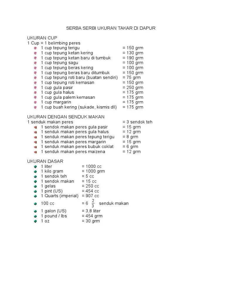 Dalam sebuah takaran, terdapat berbagai macam ukuran yang biasa digunakan. Pengukuran 1 sendok teh (sdt). Mulai dari mili liter, gram, hingga sendok makan yang digunakan . 1 sdm tepung tapioka = 15 gram . Ada juga beberapa resep makanan baik itu kue ataupun makanan . Misalnya menggunakan sendok makan, sendok teh, atau bahkan takaran tangan. Takaran bahan kue dalam 50gr dengan menggunakan sendok makan. Karena sendok teh mempunyai ukuran . Yang gak punya timbangan kadang dibikin baper sama resep yang umumnya pake ukuran gram. 1 sdm tepung terigu = 10 gram; Berikut ini ialah beberapa ukuran umum yang . Mungkin sebagian dari kita masih banyak yang kebingungan soal ukuran gram yang ada didalam satu . Biasanya ukuran ounce ini dipakai untuk pengukuran gula pasir, terigu, beras, dan lain sebagainya.