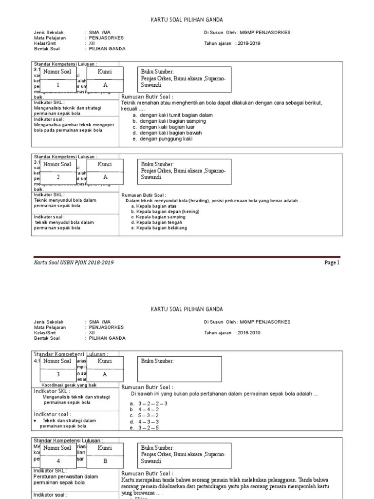 Soal pilihan ganda penjas dan jawabannya kelas xi semester 2 ini, berisikan .